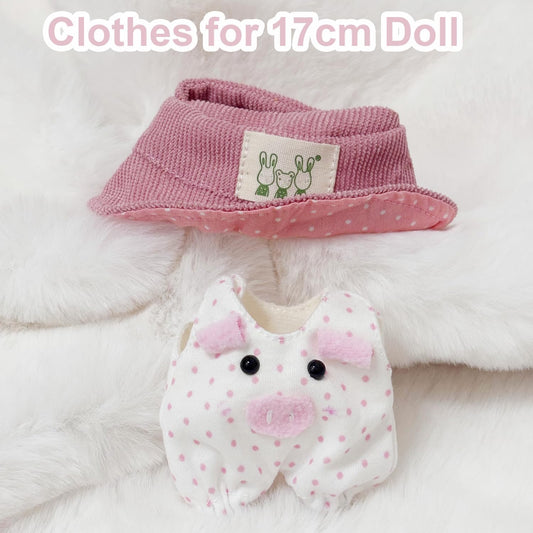 17cm Doll Clothes Set, Cute Hat & Outfit Set for Dolls, Adorable Dress-Up Accessories for Doll (Pink Pig)