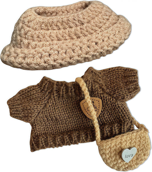 +3-Piece Handcrafted Crochet Doll Clothes Set – Hat, Sweater & Bag (Maillard Brown) Fits 5.9–6.7 inch Dolls (Labubu Gen 1 & 2) No Doll