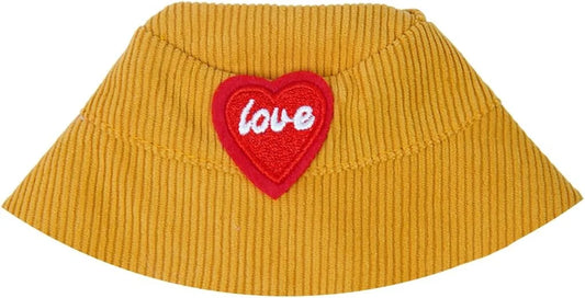 Vintage Corduroy Hat for Labubu - 6.7in Doll Size with Embroidered Heart Patch (Collector's Display Accessory, Not a Toy)