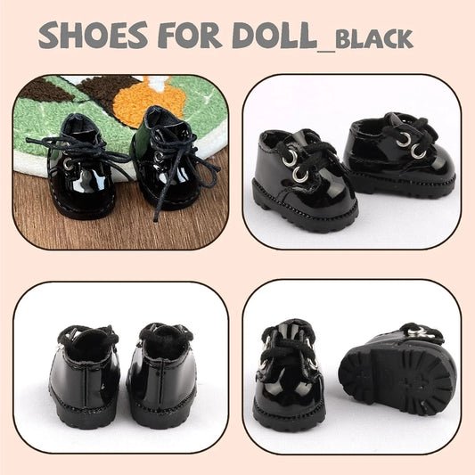 3 Pairs of Doll Shoes for Doll, Mini Shoes for 17 Cm/6.7 in Doll Cute Accessories for Doll 3 Colors to Match Different Outfits and Clothes Black/Brown/White