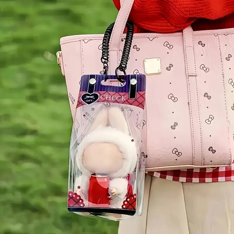 Transparent Dustproof Storage Bag with Spring Keychain for LABUBU - High-Quality Clear Plastic Display Case Suitable for LABUBU, and Winter Rhapsody Plush Toys - Collector'S Gift Toy Storage Box